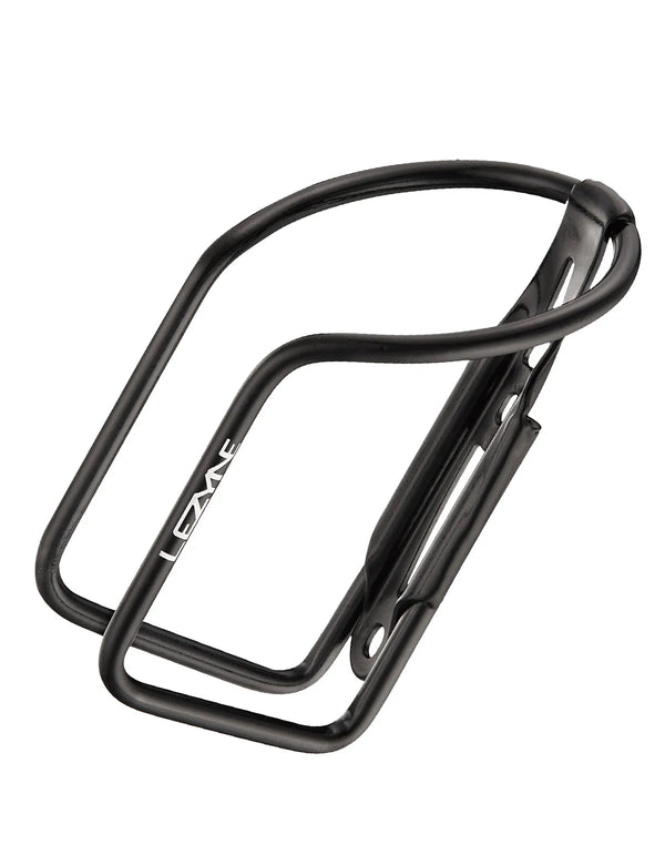 Simple and classic bike bottle cage made of lightweight, hollow aluminum tube construction. Stamped aluminum base is formed and welded to tubing. Timeless wrap-around design securely holds bottles over rough terrain. Large opening provides easy bottle access.