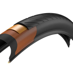 The Armour Tech™ is a patented casing derived from the Motorsport experience of Pirelli: a unique mix of Kevlar® fibers in the compound which creates a chemical barrier against punctures together with a layer of fabric that goes from bead to bead that increases the ability to resist against penetration from every angle and an extra layer of anti-puncture fabric under the tread. The 60tpi tubeless-ready casing is specifically designed for road-endurance application, exclusively patented for Pirelli. The tubeless-ready configuration provides extra supplenes and better speed to a unique casing in its category